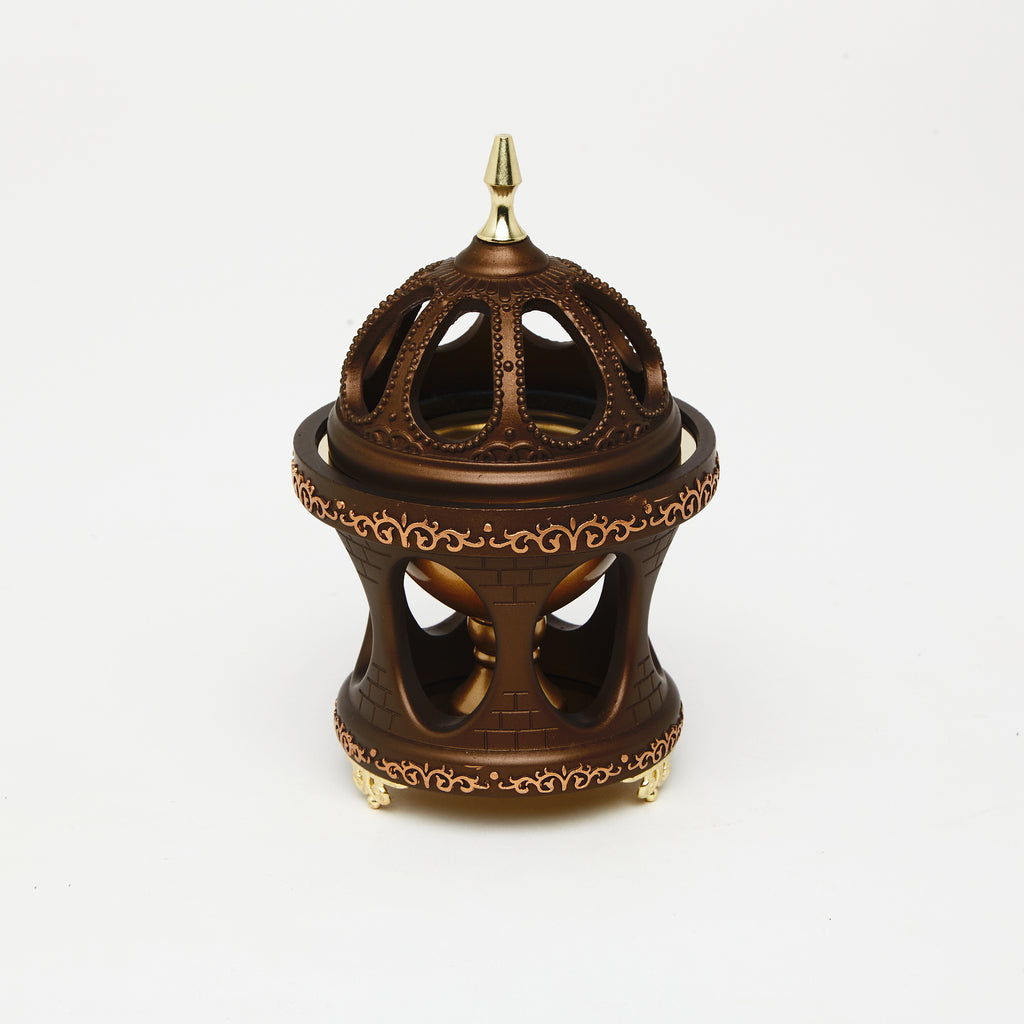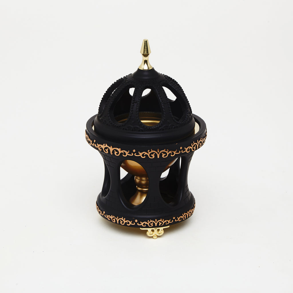 The Royal Drum Burner is a prestige incense burner inspired by regal Arabian artistry. Its drum-shaped body with intricate golden detailing is crowned with an ornate lid and finial, symbolizing luxury and heritage. Both functional and decorative, it transforms any bakhoor ritual into a majestic experience.
